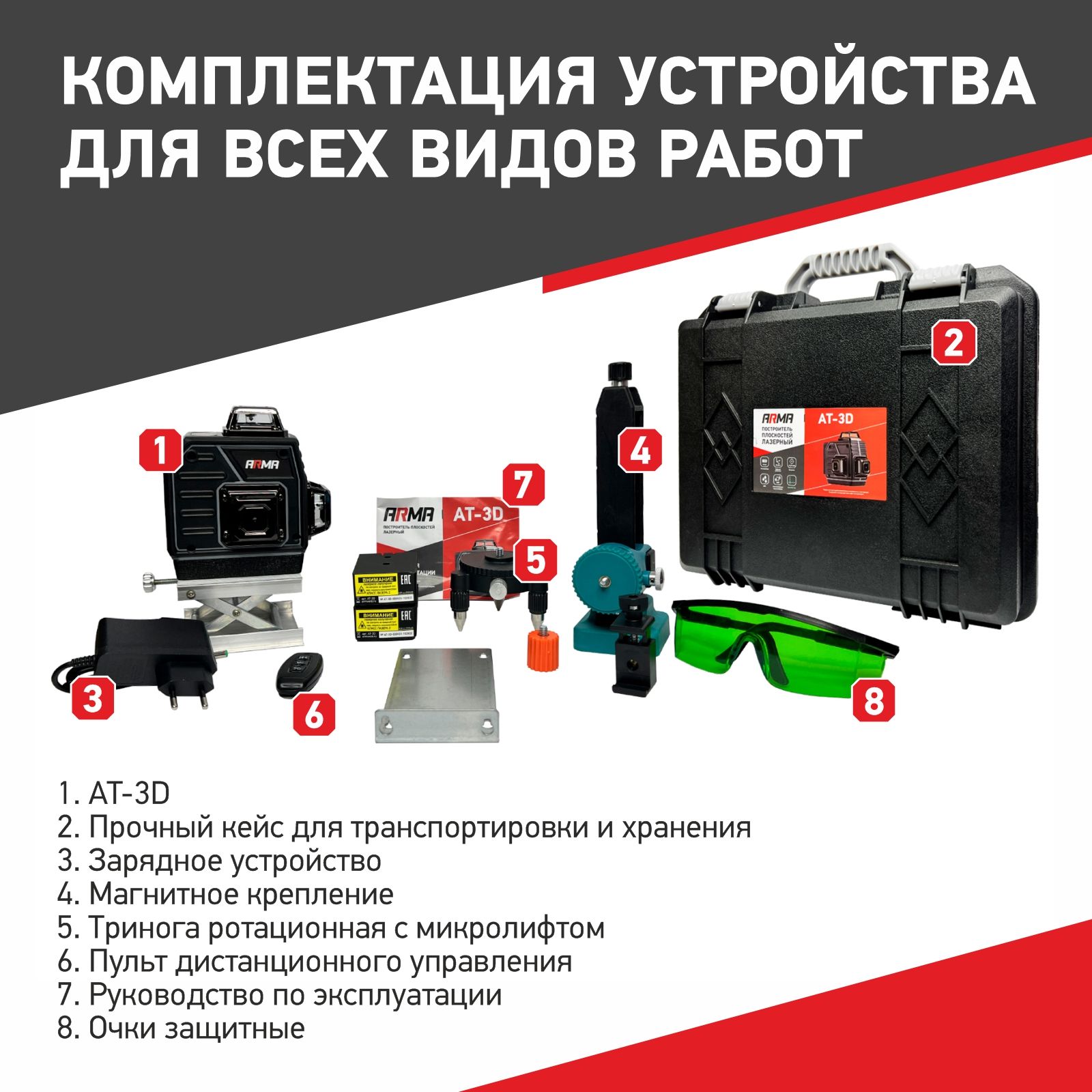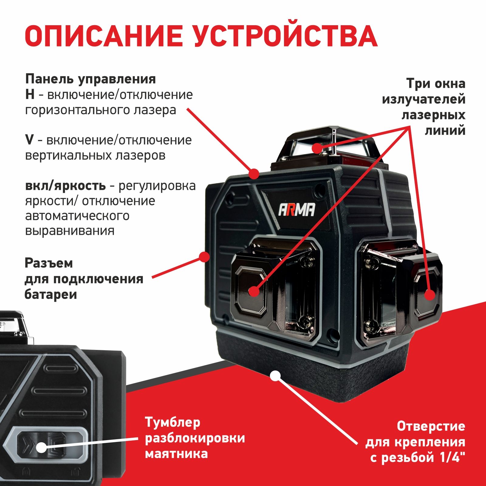 - Проекция лазера: 3х360°